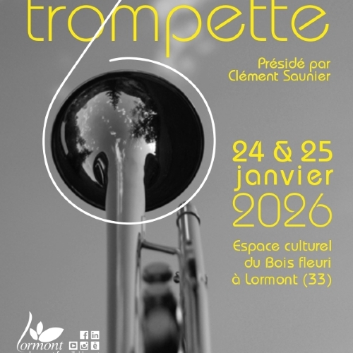 Afficher le planLe 6e concours national de trompette, organisé par la Ville de Lormont, aura lieu du 24 au 25 janvier 2026. Il sera présidé par Clément Saunier. plus d'infos Ce concours sera ouvert à 80 instrumentistes de 12 à 24 ans qui rivaliseront dans 4 catégories :